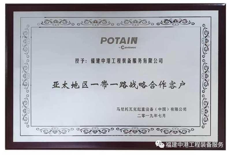 作為一家綜合性專業(yè)化工程裝備服務(wù)公司,中港公司立足“高起點(diǎn)建設(shè)、高質(zhì)量管理、高效能運(yùn)作、高標(biāo)準(zhǔn)服務(wù)”的高地平臺(tái),始終如一堅(jiān)持規(guī)范運(yùn)作、科學(xué)管理,憑借全方位的技術(shù)支持、強(qiáng)大的設(shè)備實(shí)力和安全可靠的安裝維修能力,贏得了顧客的忠誠和美譽(yù)。先后榮獲“中聯(lián)重科五千萬級(jí)戰(zhàn)略合作伙伴”、“中建二局第一建筑工程有限公司AAA誠信供方”、“第十三屆全國建筑機(jī)械租賃企業(yè)設(shè)備管理優(yōu)秀單位”、“中建二局第一建筑工程有限公司2015年度優(yōu)秀分供方”、“中建海峽建設(shè)發(fā)展有限公司2016年優(yōu)秀合作企業(yè)”、“中建三局集團(tuán)有限公司(粵)2017年度良好合作單位”、“2018年全國建筑施工機(jī)械租賃50強(qiáng)企業(yè)”、“廣東省建筑機(jī)械租賃、安裝企業(yè)信用評(píng)價(jià)B級(jí)”、“2020年中國塔機(jī)租賃50強(qiáng)”等。